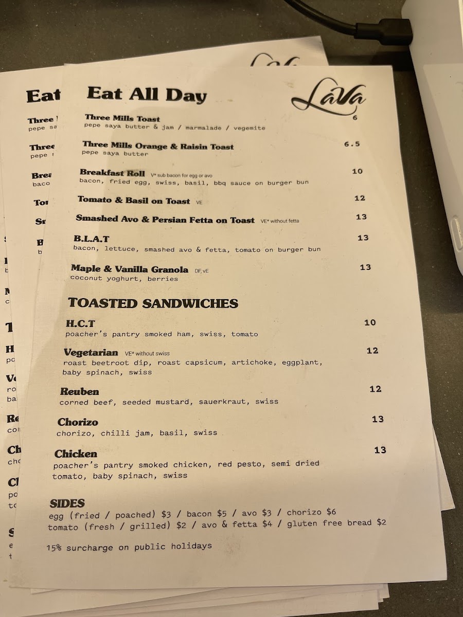 Lava Coffee Menu