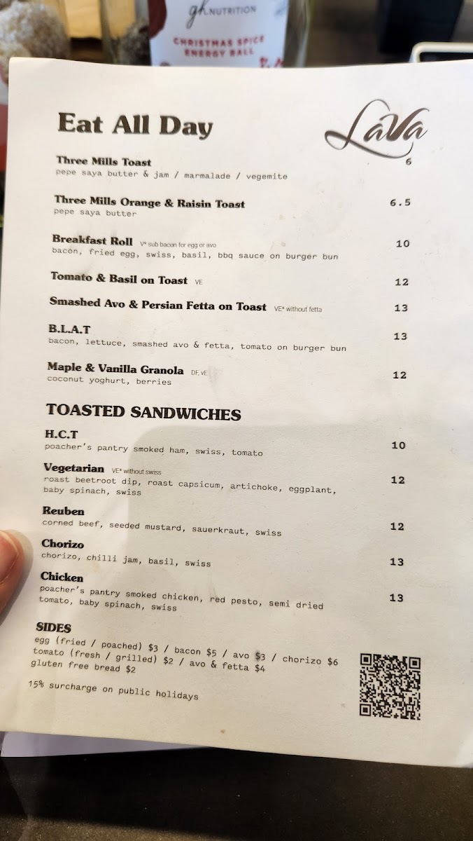 The menu at Lava Coffee is thoughtfully crafted, featuring all-day dining options such as the indulgent Smashed Avo & Persian Fetta on Toast and the hearty Breakfast Roll. For sandwich enthusiasts, their toasted sandwiches include delightful choices like the classic Reuben and the flavorful Chorizo. Each dish is prepared with fresh ingredients, ensuring quality and taste in every bite.